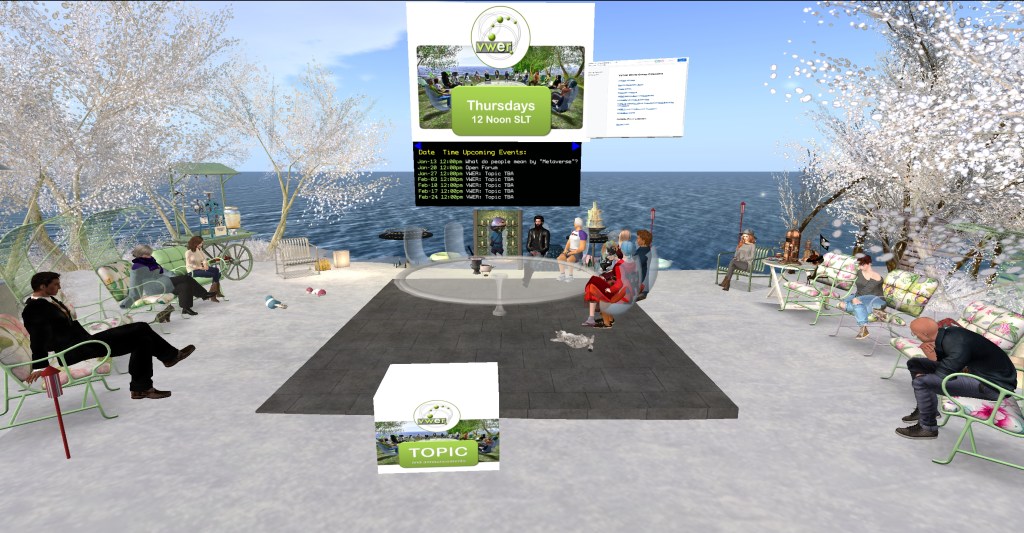 Sheila Yoshikawa: Hi everyone, and welcome to the Virtual Worlds Education Roundtable. We meet on Thursdays at 12 noon SLT for an hour.