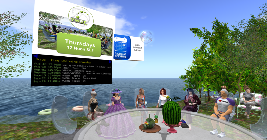 Sheila Yoshikawa: Hi everyone, and welcome to the Virtual Worlds Education Roundtable. We meet on Thursdays at 12 noon SLT for an hour. VWER is a forum to educate and inform the community about issues that are important and relevant to education in virtual worlds. This is a public meeting, so we will be keeping and publishing a transcript in due course. The transcripts can be found at https://vwer.info/. The VWER continues to develop a community of educators from around the world. Please join the VWER group here in SL.