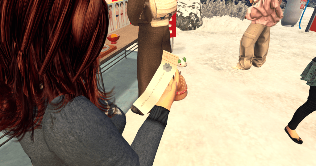 Second Life: [MRS]OMIKUJI Vendor owned by ļ¾ļ¾ļ¾ļ¾ļ¾ļ¾ļ¾ (hideaki.core) gave you ’08’ ( tonarino (133,150,38) ).