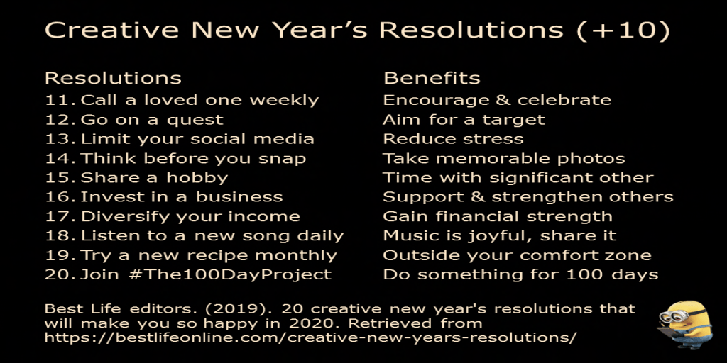 Valibrarian Gregg: I like one my friend shared— her resolution was to wear more lipstick! a cheery colorful year!