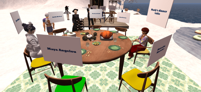 Transcript of the Virtual Worlds Education Roundtable: January 6, 2022 Topic: Dream Dinner Party Photos by Beth Ghostraven Who would you invite to your dream dinner party - thinking particularly about yourself as an educator (and learner)? They can be alive, dead, fictional, they do not have to be human .... think who you would … Continue reading January 6, 2022: Dream Dinner Party